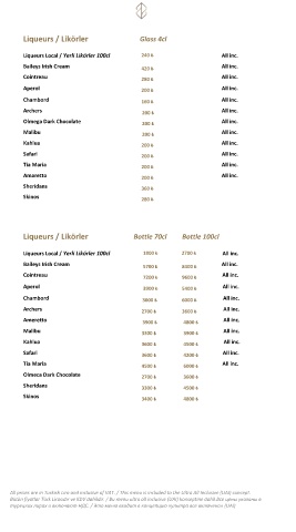 All prices are in Turkish Lira and inclusive of VAT. / This menu is included to the Ultra All Inclusive (UAI) concept.