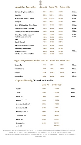 All prices are in Turkish Lira and inclusive of VAT. / This menu is included to the Ultra All Inclusive (UAI) concept.