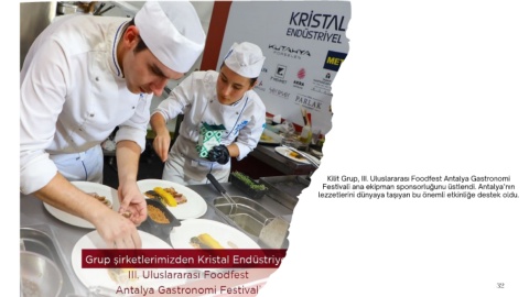 Kilit Grup, III. Uluslararası Foodfest Antalya Gastronomi Festivali ana ekipman sponsorluğunu üstlendi. Antalya’nın lezzetlerini dünyaya taşıyan bu önemli etkinliğe destek oldu. 32