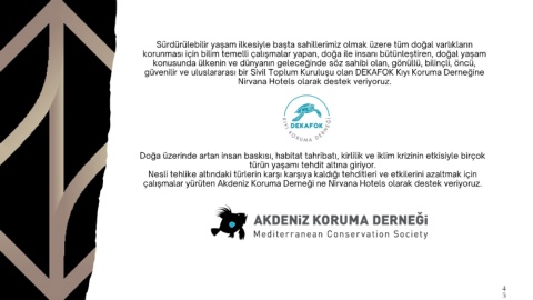 çalışmalar yürüten Akdeniz Koruma Derneği ne Nirvana Hotels olarak destek veriyoruz.