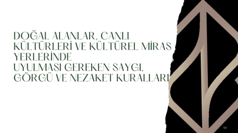 DOĞAL ALANLAR, CANLI KÜLTÜRLERİ VE KÜLTÜREL MİRAS YERLERİNDE UYULMASI GEREKEN SAYGI, GÖRGÜ VE NEZAKET KURALLARI 92
