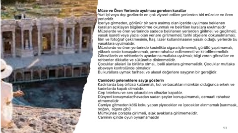Müzelerde ve ören yerlerinde kesinlikle sigara içilmemeli, gürültü yapılmamalı,