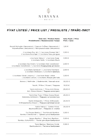 FİYAT LİSTESİ / PRICE LIST / PREISLISTE / ПРАЙС-ЛИСТ